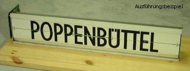 Ausführung: weiße Schrift auf schwarzem Grund, weißer Rand