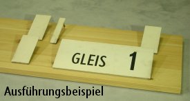 Beschriftung "GLEIS" und aufgeklebter Nummer "1" (siehe auch Foto "Sichtblenden-Satz")