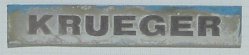 Beschreibung: schwarze Beschriftung "KRUEGER" auf metallischem Grund
