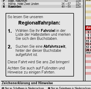 Platz es zulässt, auf jeden Fahrplan eine kurze Bedienungsanleitung gedruckt,