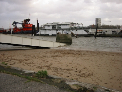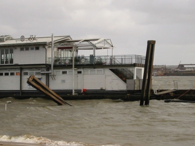 Der Frachter rammte den Ponton in Höhe des Cafes und drückte diesen