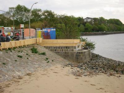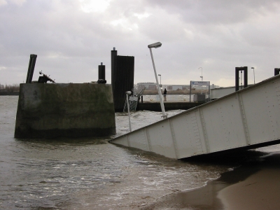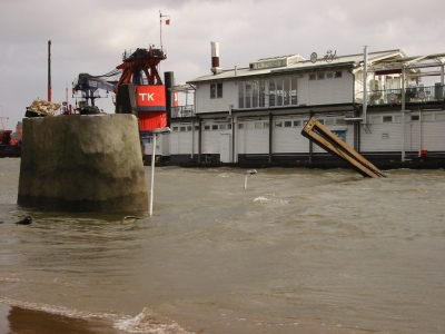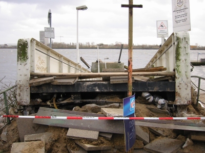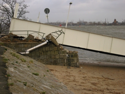 Verankerung gerissen. Der landseitige Teil wurde einige Meter auf das Ufer
