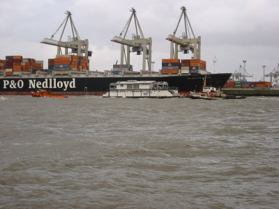 Befestigungen des beschädigten Pontons getrennt. Mit Hilfe eines Schleppers