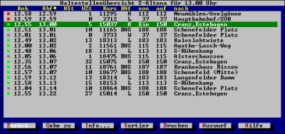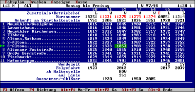 - In der Haltestellenübersicht sind alle Fahrzeuge (Kurse) aufgeführt,